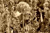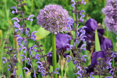 Naturnaher Garten in lila, Heilsalbei (Salvia officinalis) und Zierlauch (Allium), bienenfreundlicher Garten