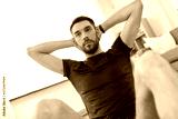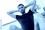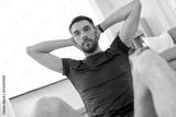 sport, fitness and healthy lifestyle concept - man making abdominal exercises at home