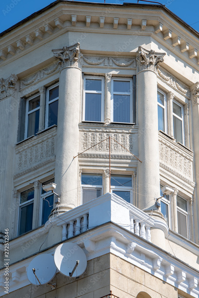 Part of the facade of the building, details of Soviet architecture, Minsk, Belarus,