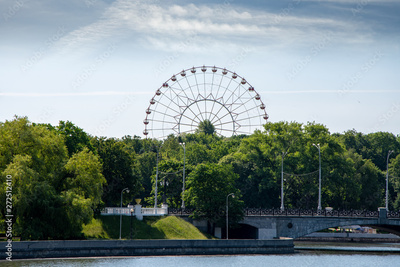 Central part of Minsk, embankment of the river Svisloch, amusement Park