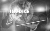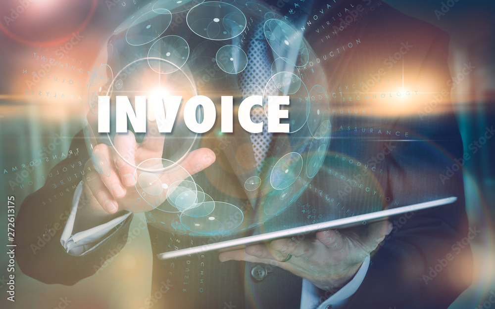 A hand selecting a Invoice business concept on a futuristic computer display.