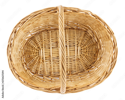 Empty wicker picnic basket. Isolated on white.
