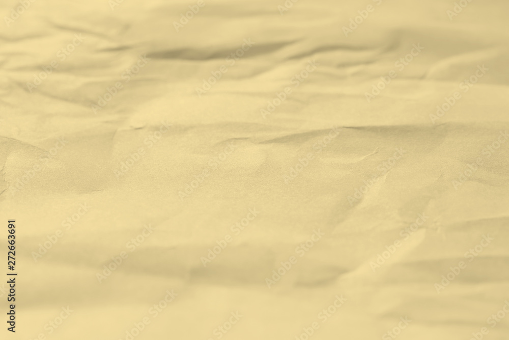Paper beige color is crumpled and aged. The texture of the surface is old and wrinkled in vintage retro style.