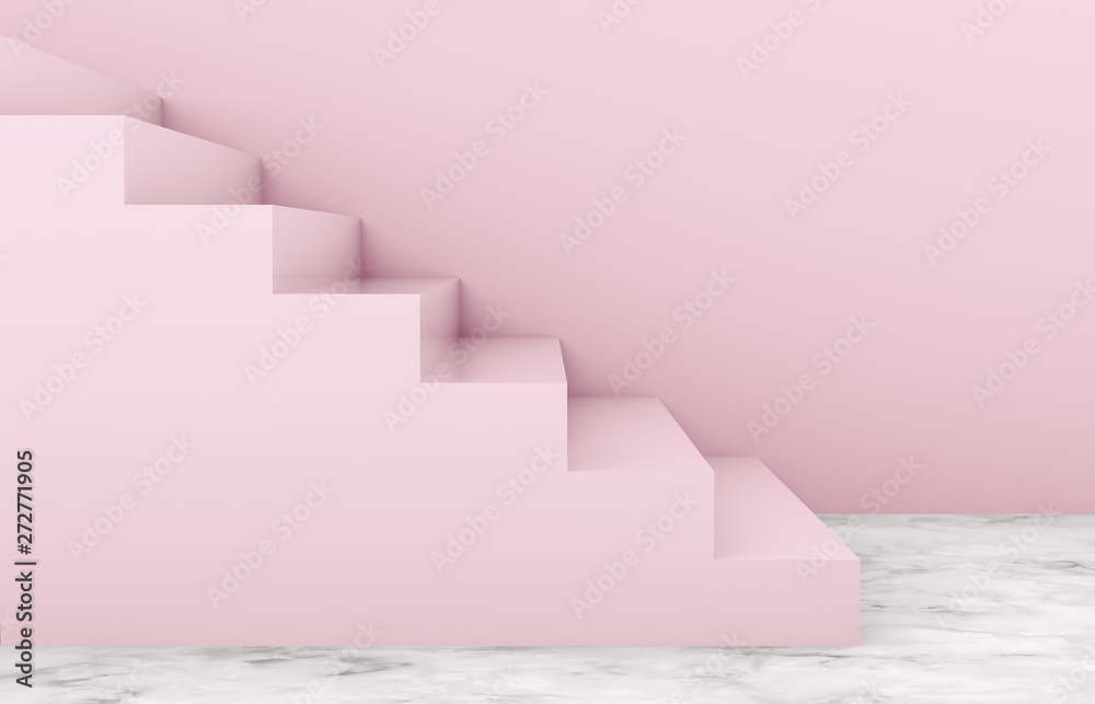 Fashion beauty podium backdrop with pink stair for product display. Geometric 3d steps background. Pink background.