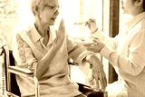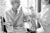 Unhappy asian senior woman rejecting,gesture hand “NO” elderly patient bored with food or boredom,old people getting sick and tired of food in wheelchair at home,loss of appetite,anorexia concept