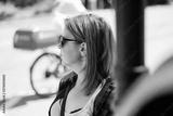 Relaxed young woman with short brown hair and wearing sunglasses walking on the city streets on a summer day – Casually dressed girl enjoying sun outdoor while looking away