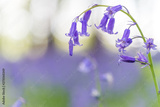 A single bluebell in a beech tree forest