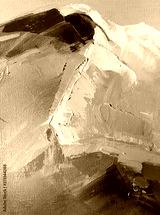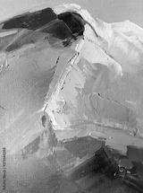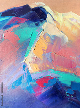 Beautiful mountains painted oil in multicolored tones. Conceptual abstract closeup of a painting by oil and palette knife on canvas.
