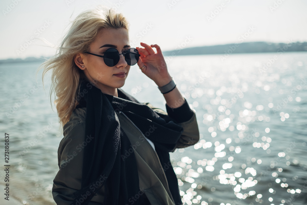 Beautiful Blonde Girl Having Fun Near the Lake