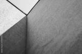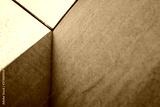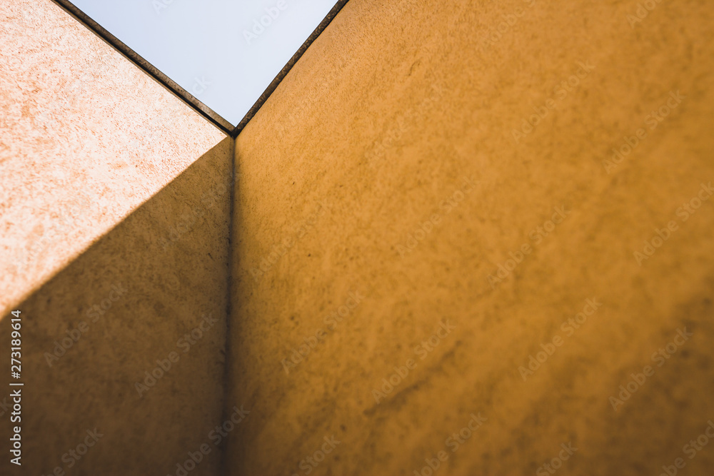 Corner of two buildings with yellow walls and shadow extending on both of them – Abstract architectural background with geometric lines