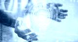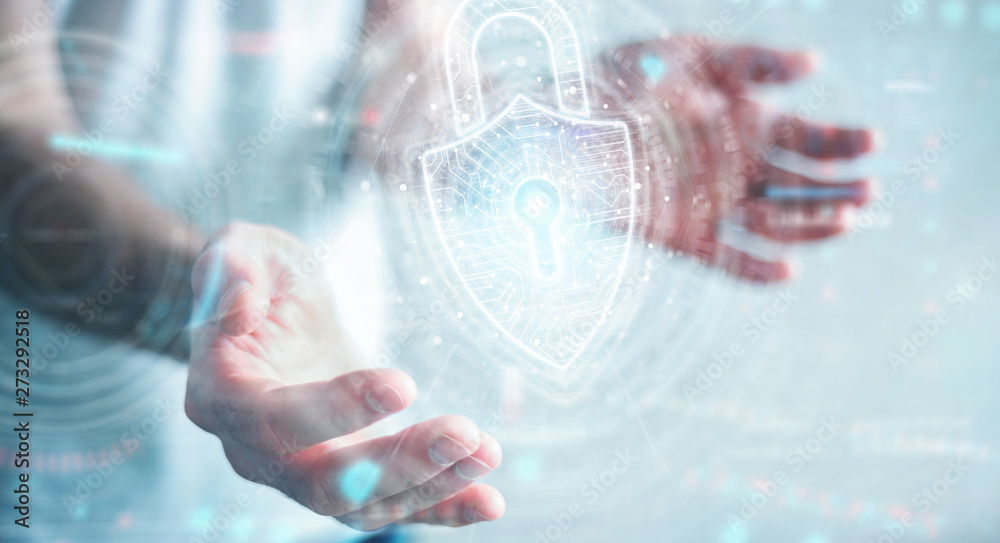 Businessman using digital padlock security interface to protect datas 3D rendering