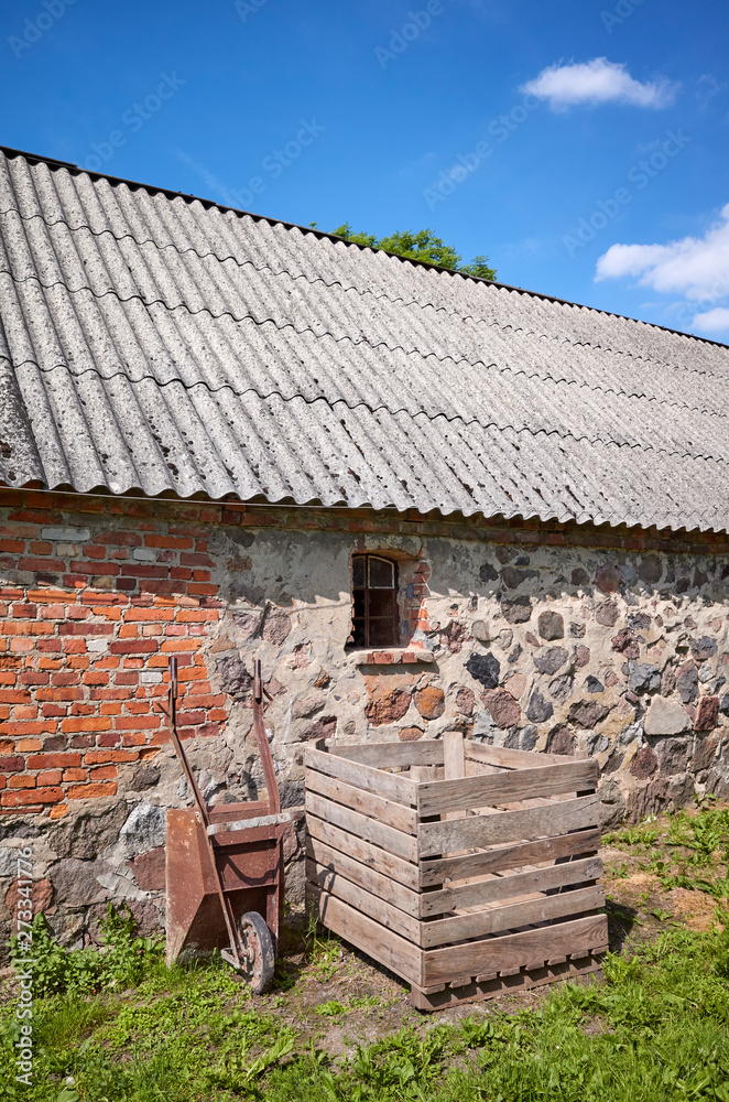 An old abandoned building with roof made of carcinogenic asbestos tiles.