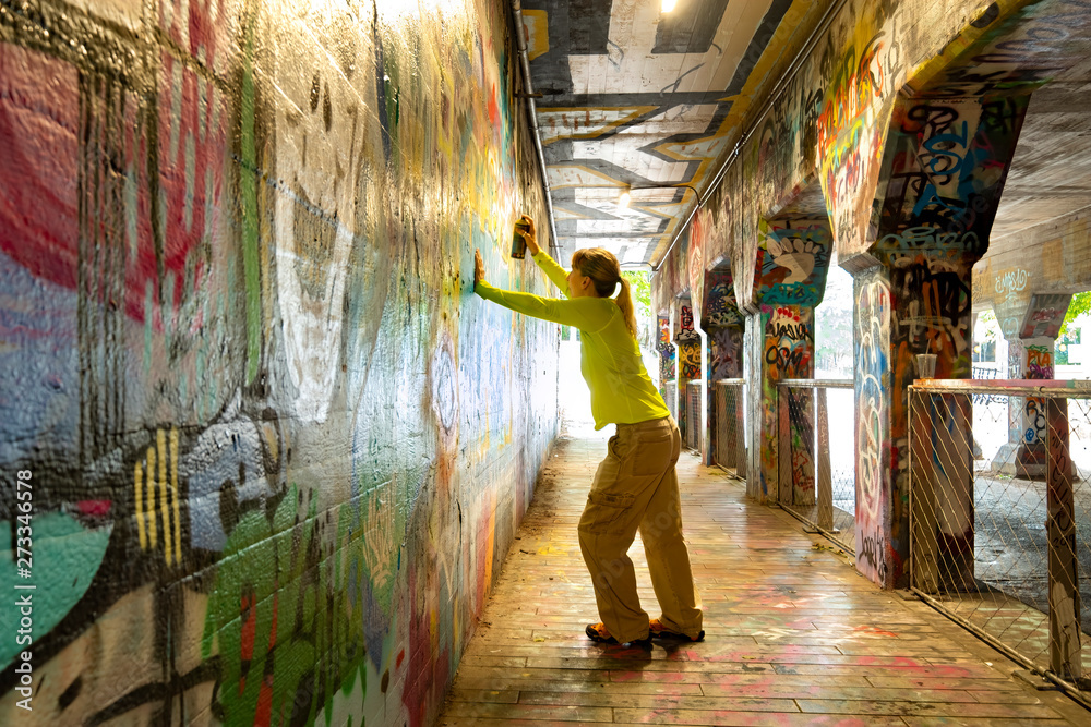 Spray Painting Graffiti in Krog Street Tunnel, Atlanta, Georgia