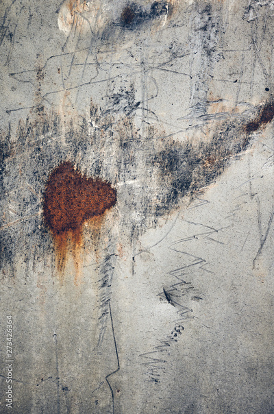 Picture of a scratched and stained wall, color toned abstract background or texture.