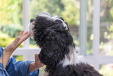 Side view of check before grooming the American Cocker Spaniel Dog. Dog is looking at the groomer.