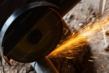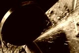 Sawing a metal pipe with an electric saw