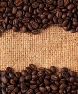 roasted coffee bean on linin sack