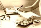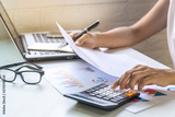 Businesswoman working on Desk office with marketing graph statistics analysis