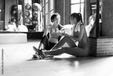 Healthy asian two people young woman eating vegetables green salad at gym In a room with a window with natural light. Fitness and healthy food concept