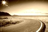 Summer road background of free space for your decoration and ocean landscape.