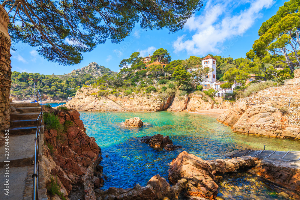 Coastal path along sea in picturesque Fornells village, Costa Brava, Spain
