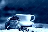 Coffee cups and coffee beans