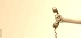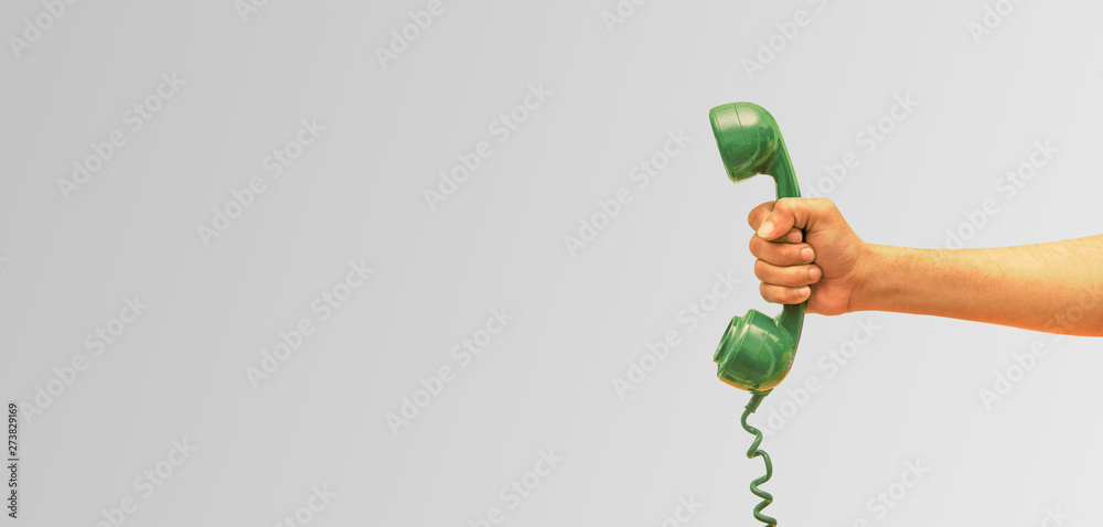 Old phone receiver in hand, businessman holding The old phone receiver, banner background