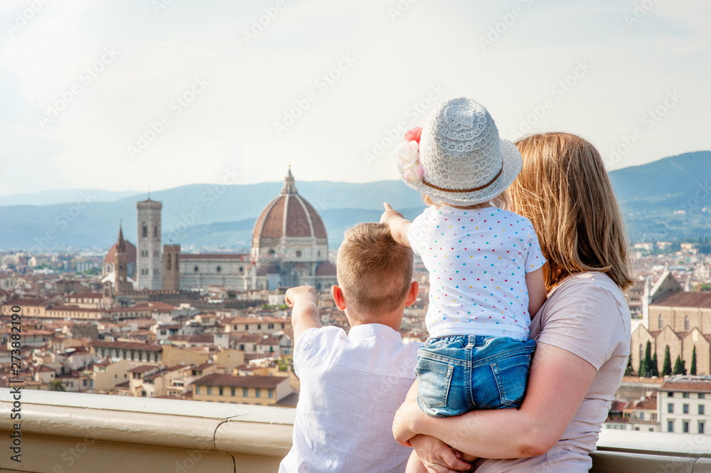 Happy family looking on panoramic view of florence, Italy
