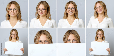 Beautiful woman with different facial expressions and gestures