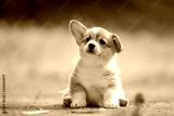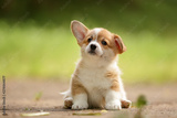 Cute Welsh corgi puppy sitting outdoor in summer