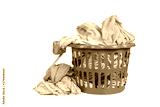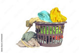Clothes basket to hand Washing or laundry in a washing shop on white background.