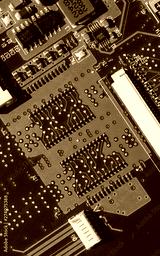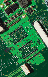 Macro photo of laptop microcircuits close up