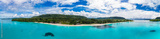 Port Orly sandy beach with palm trees, Espiritu Santo Island, Vanuatu.