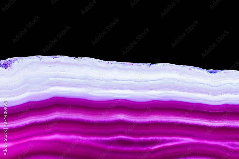 Purple violet agate slice striped mineral isolated on black, abstract background