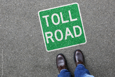 Man people toll road street city town pay paying clean air highway sign zone