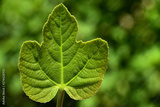 Nahaufnahme eines Feigenblattes vor grünem Hintergrund