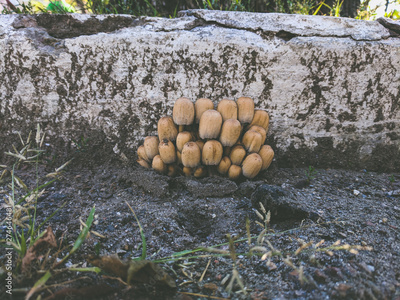 dung mushrooms in the forest