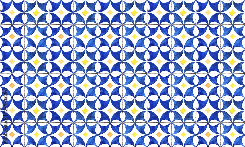 Seamless Portugal or Spain Azulejo Wall Tile Background. High Resolution.