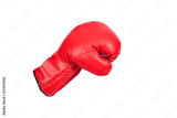 Pair of red leather boxing gloves or mitt isolated on white background.