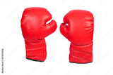 Pair of red leather boxing gloves or mitt isolated on white background.