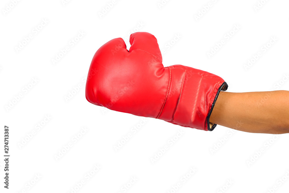 Pair of red leather boxing gloves or mitt isolated on white background.