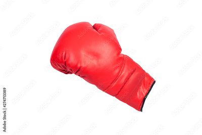 Pair of red leather boxing gloves or mitt isolated on white background.
