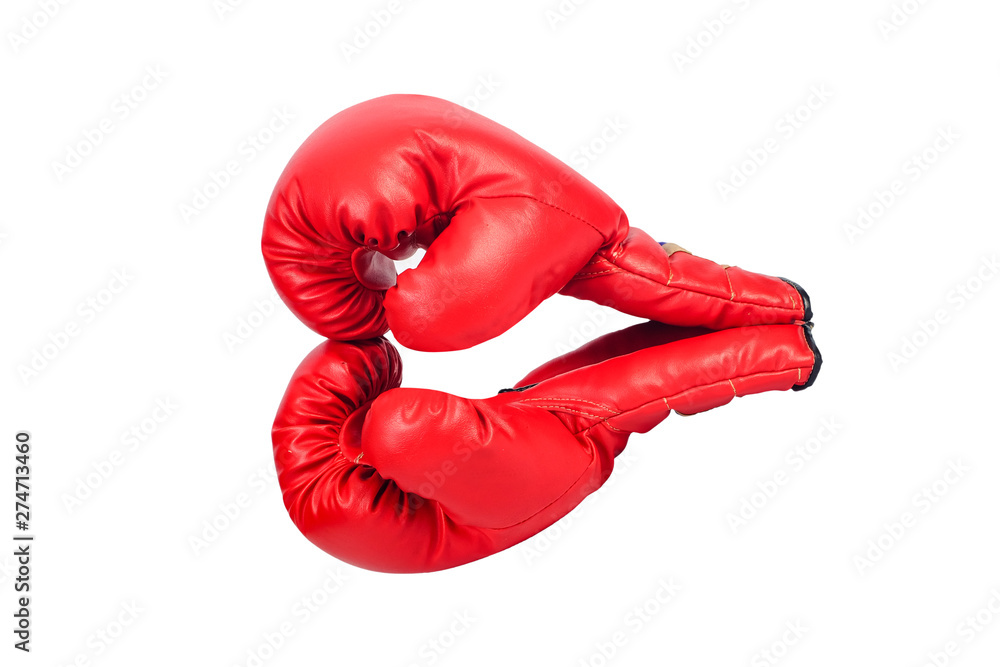 Pair of red leather boxing gloves or mitt isolated on white background.