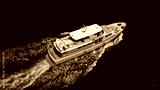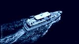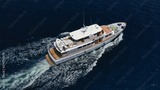 Aerial drone photo of luxury yacht cruising deep blue sea in Mediterranean Aegean island destination located in Greece