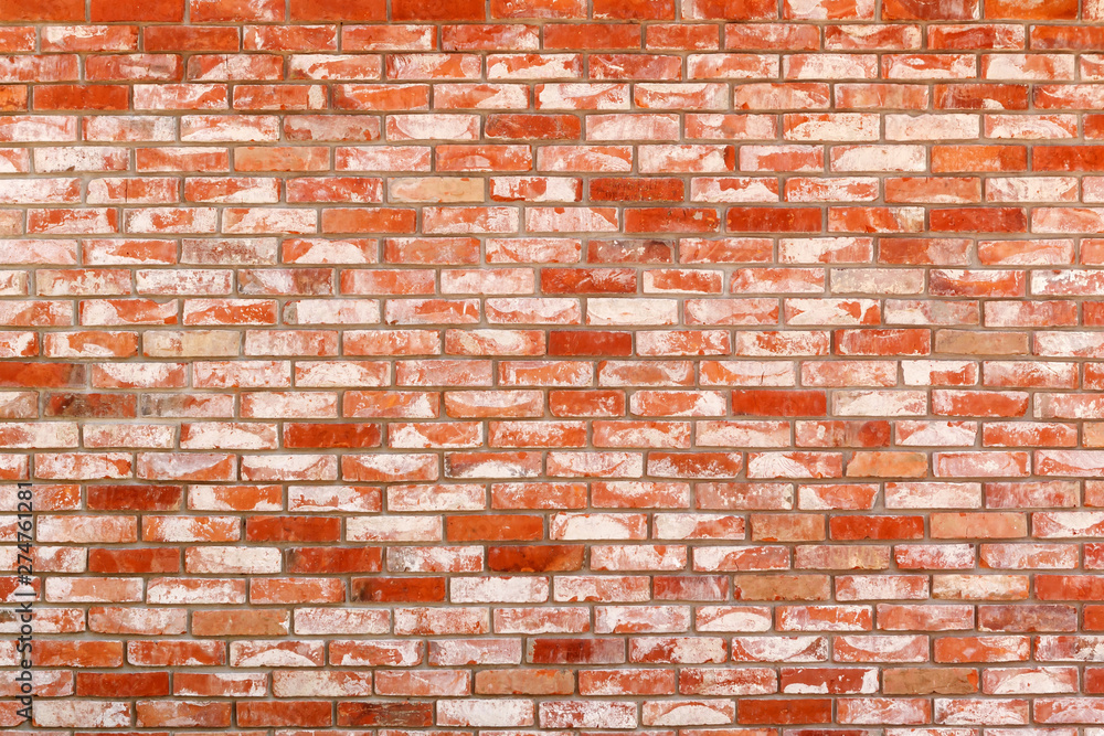Neat wall of old, reuse red ceramic brick. Grunge background, texture.