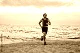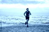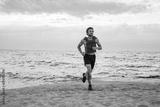 Young bearded athlete training outdoor with weighted vest, exercise with military plate carrier