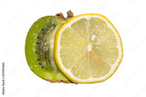Kiwis with lemon isolated on white background.