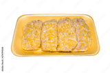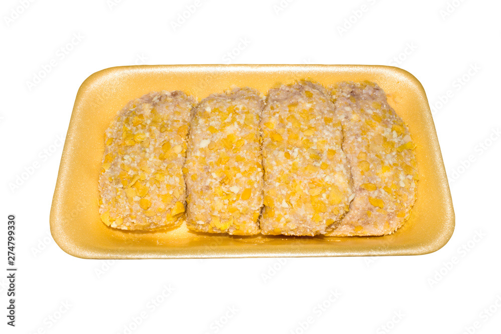 Schnitzel chopped chicken.Background from raw chicken schnitzel in breadcrumbs.