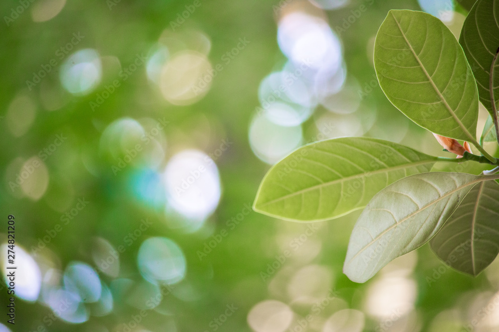 Closeup nature view of green leaf on sunlight, natural green plants using as a background or wallpaper