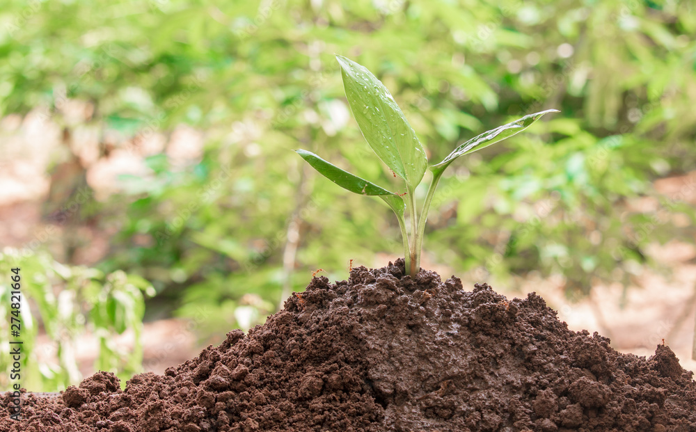 Young plant in the morning light on nature background